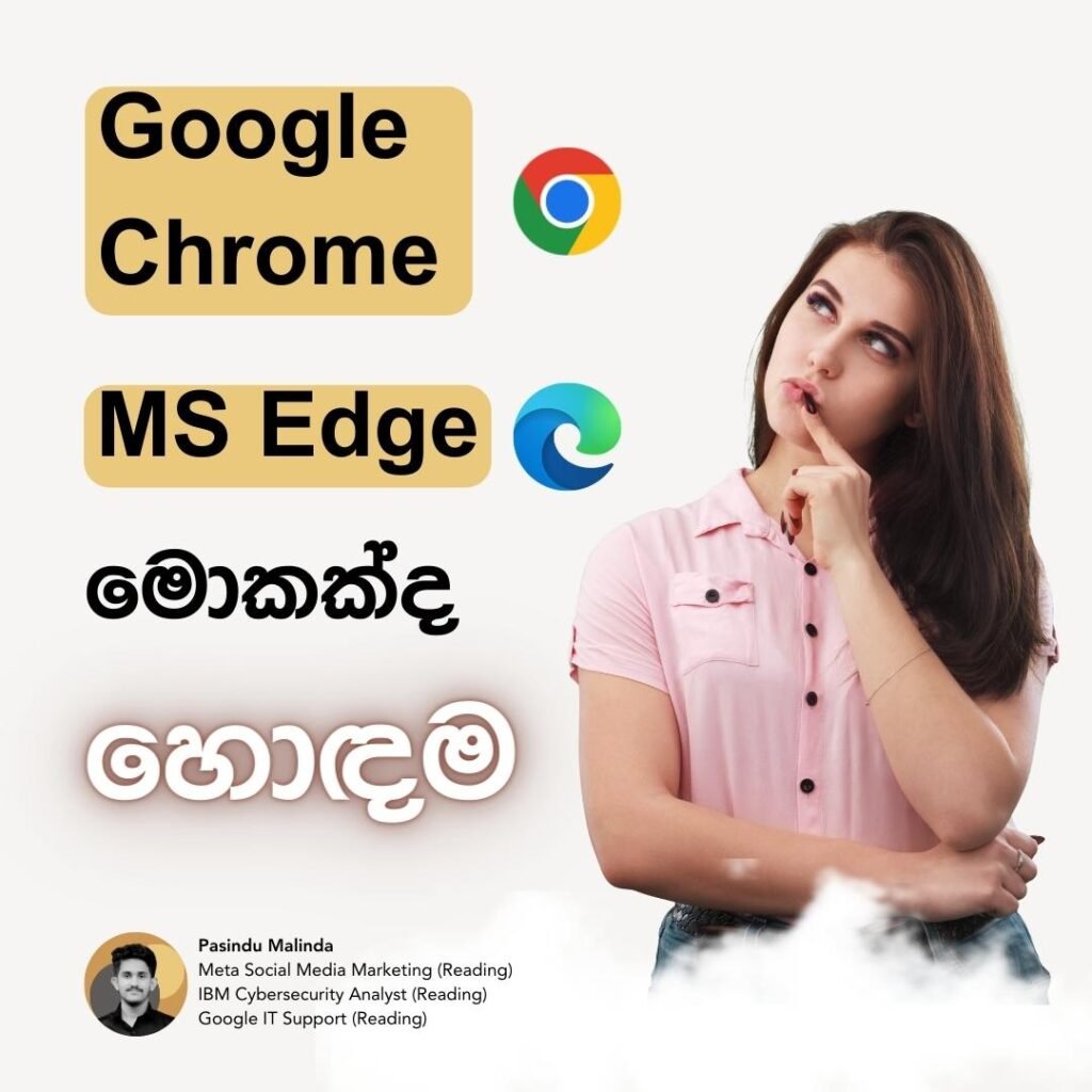 Google Chrome එහි speed, lightweight නිසා බොහෝ දෙනා භාවිත කරන අතර,MS Edge එහි Performance, Privacy and security එක ඉතා හොඳ නිසා සමහරු භාවිතා කරනවා. ඔයා use කරන්නේ මොන web browser එකද කියලා comment කරන්න.
